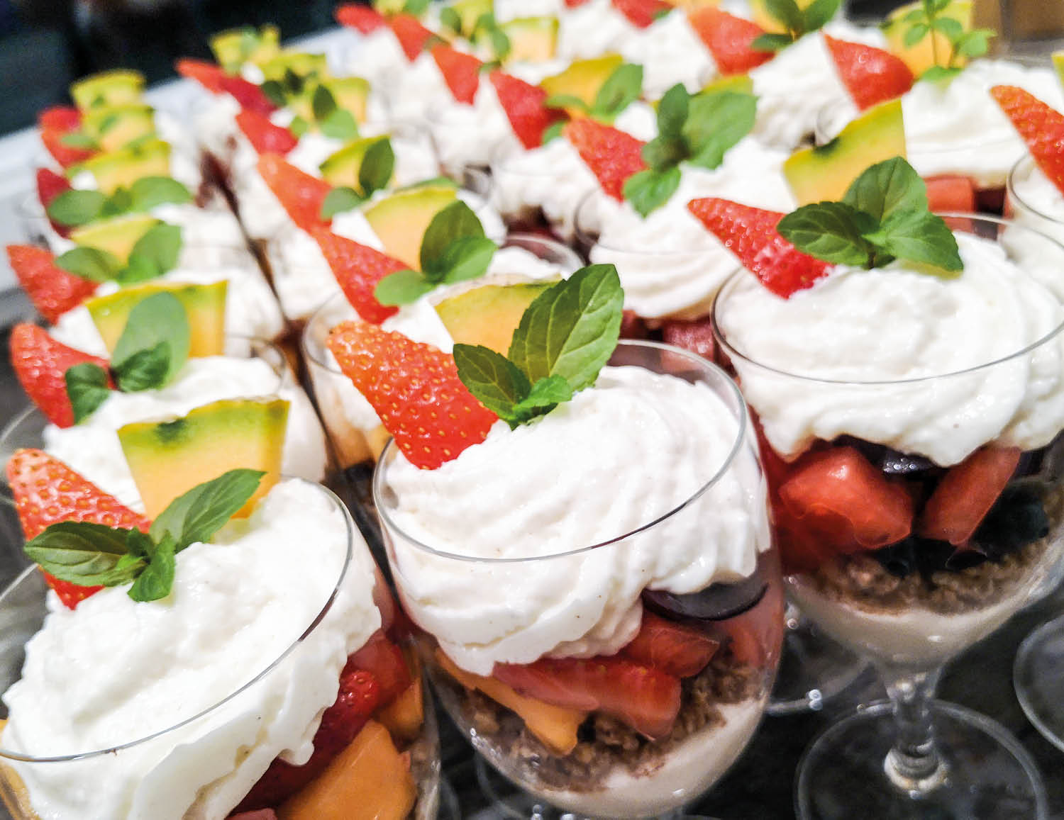 - Fruchtcocktail mit leichter Joghurtcreme im Glas