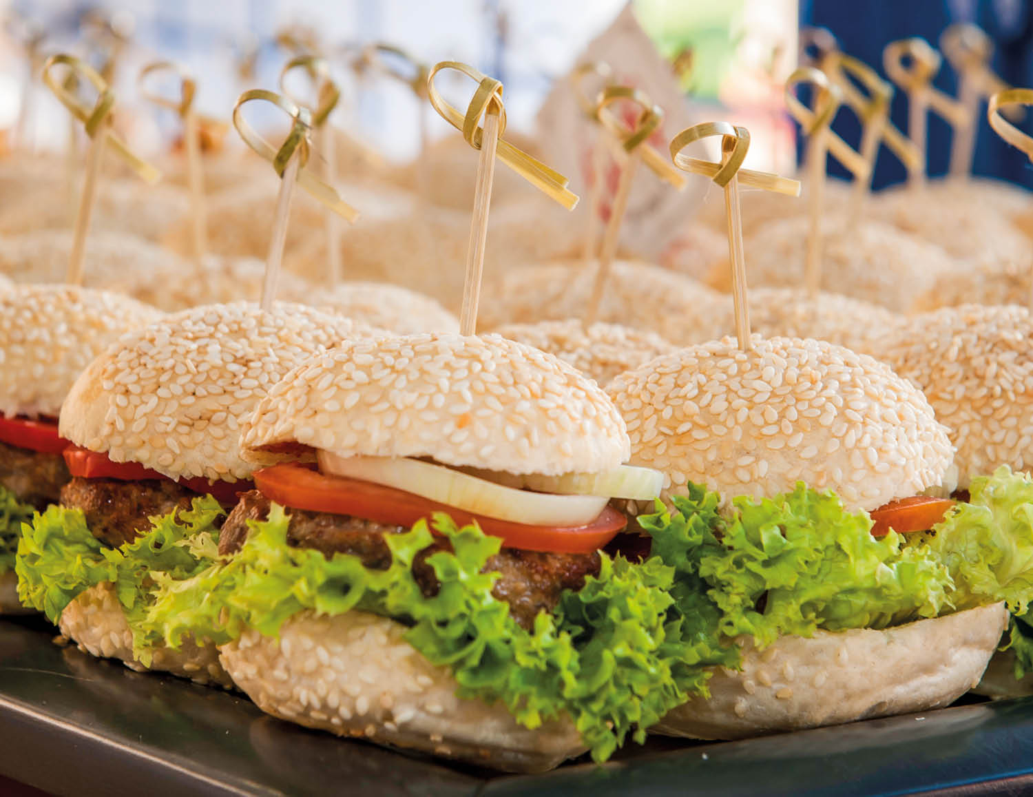 - Mini-Burger mit Blattsalat, Tomate, Gurke & BBQ Sauce